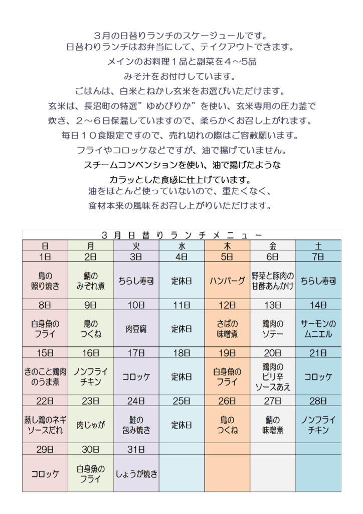 3月の日替わりランチ・お弁当メニュー